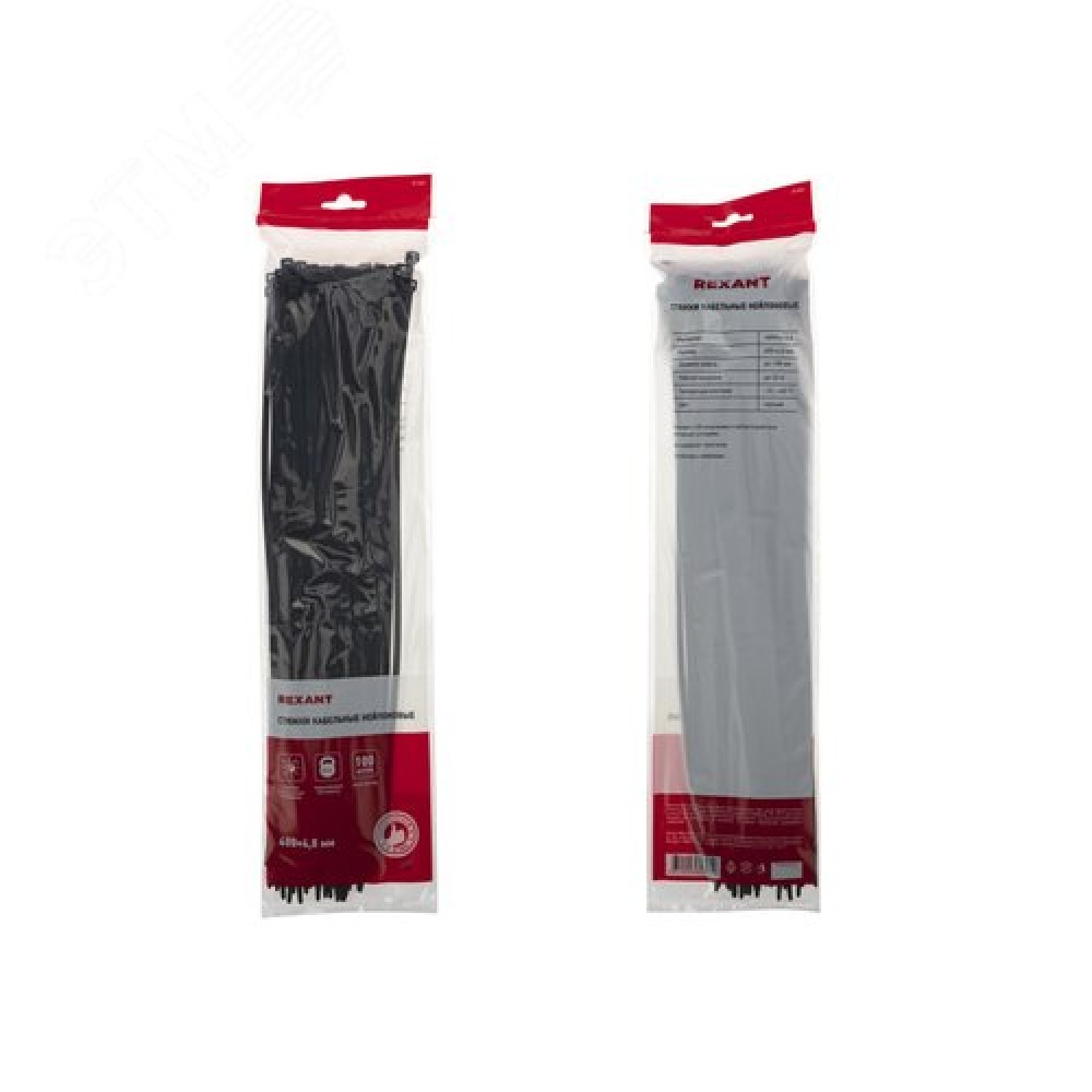 Технические характеристики Хомут-стяжка кабельная нейлоновая 400x4,8 мм, черная, упаковка 100 шт, REXANT