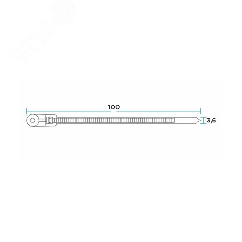 Технические характеристики Хомут-стяжкa нейлоновая под винт 100x3,6 мм, черная, 100 шт