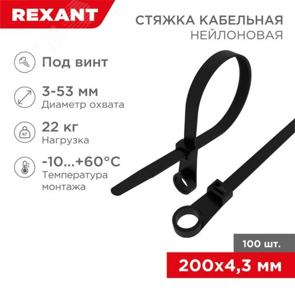 Технические характеристики Хомут-стяжкa нейлоновая под винт 220x4,3 мм, черная, 100 шт