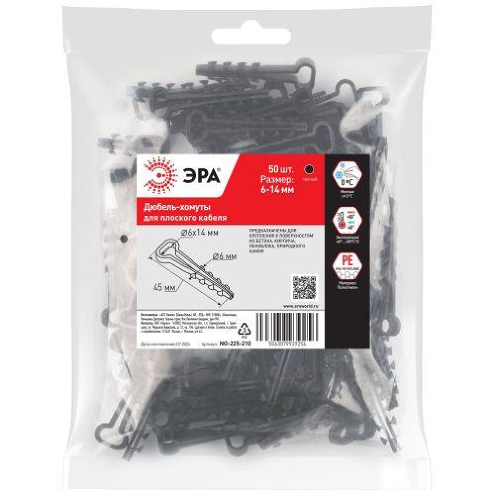 Технические характеристики Дюбель-хомут 6-14мм для плоского кабеля NO-225-210 черн. (уп.50шт) Эра Б0066286