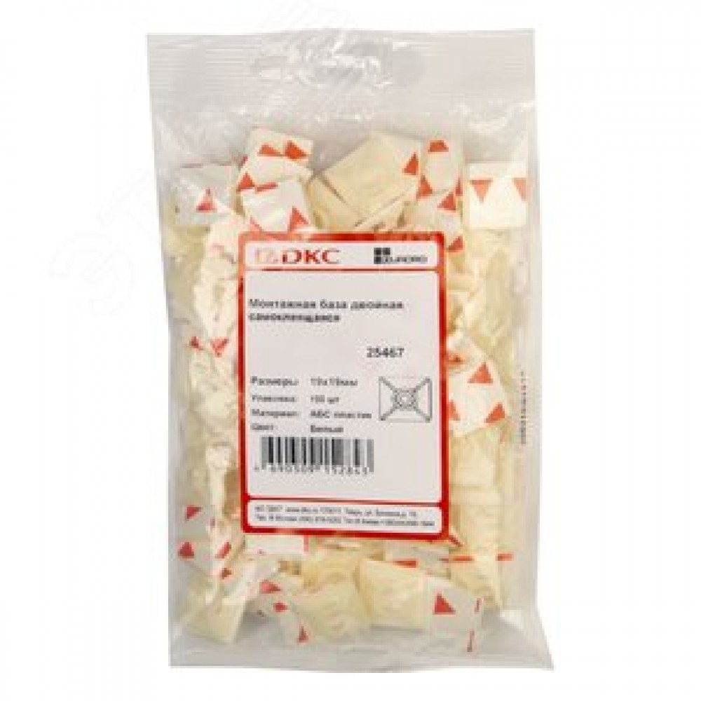 Технические характеристики Монтажная база двойная самоклеящаяся 19x19, белая для хомутов шириной до 3,6мм