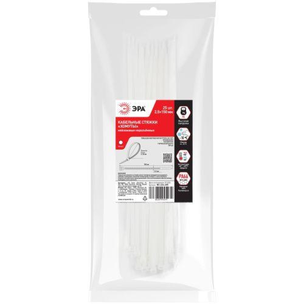 Технические характеристики Хомут кабельный 2.5х150 бел. NO-224-205 (уп.25шт) Эра Б0065976