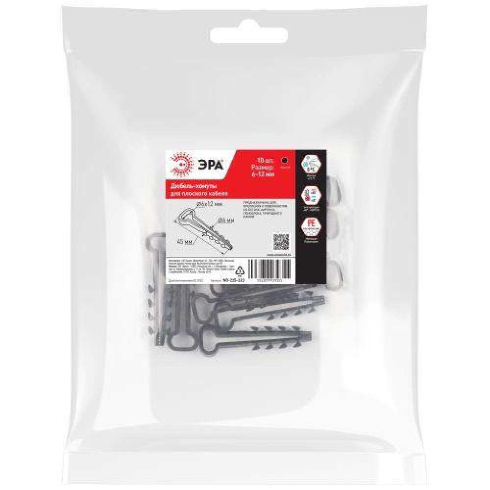 • Дюбель-хомут 6-12мм для плоского кабеля NO-225-223 черн. (уп.10шт) Эра Б0066301