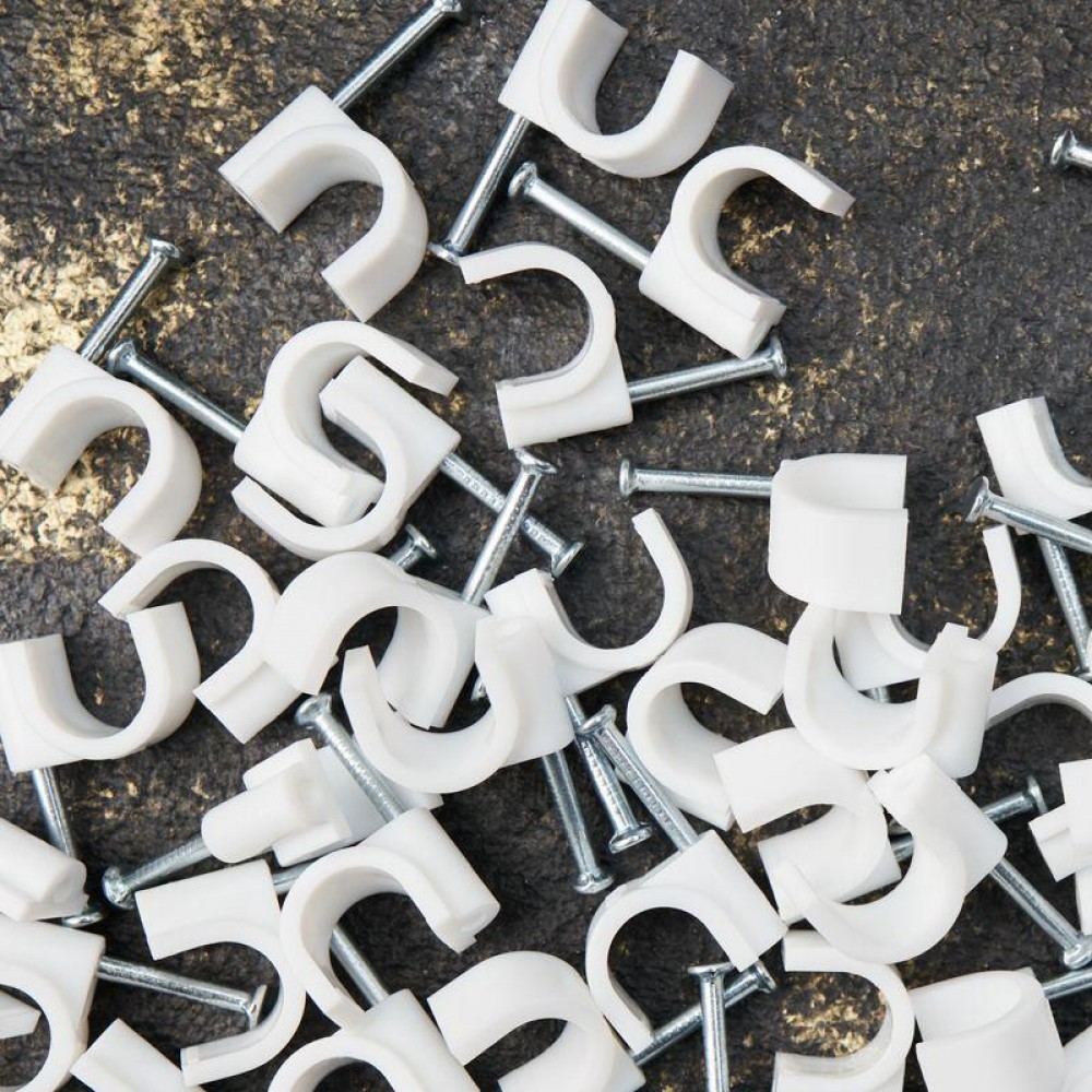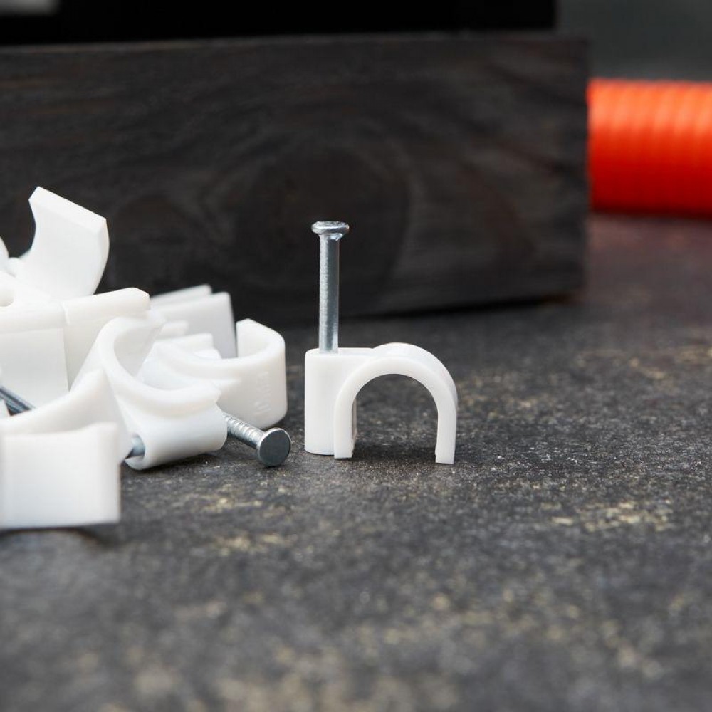 Круглый крепеж 10 мм с гвоздем предназначен для фиксации круглого кабеля к деревянной поверхности. Такой крепеж будет особенно полезен для использования на даче или в частном деревянном доме.