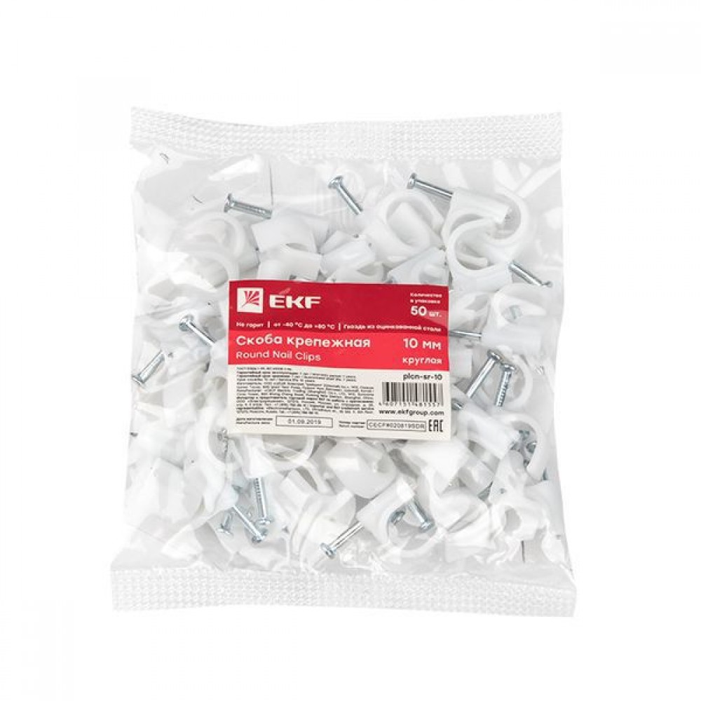 Технические характеристики Скоба крепежная круглая с гвоздем d10мм пластик. (уп.50шт) EKF plcn-sr-10