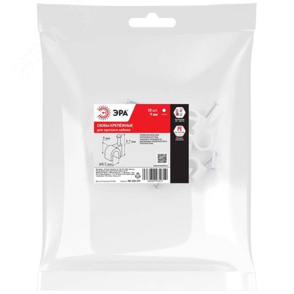 Технические характеристики Скоба пластиковая крепежная круглая 9 мм белая NO-225-279 (10 шт/уп)