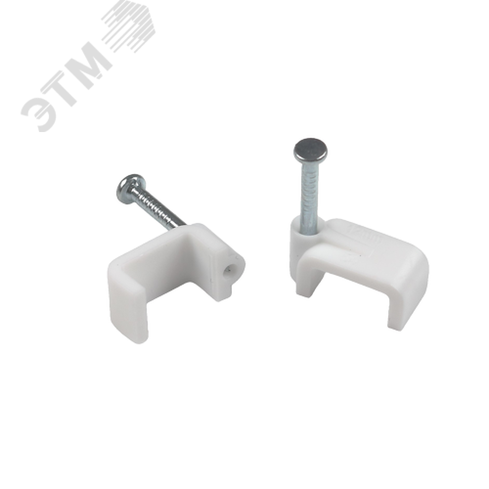 Скоба пластиковая крепежная плоская 12 мм белая NO-225-288 10 шт