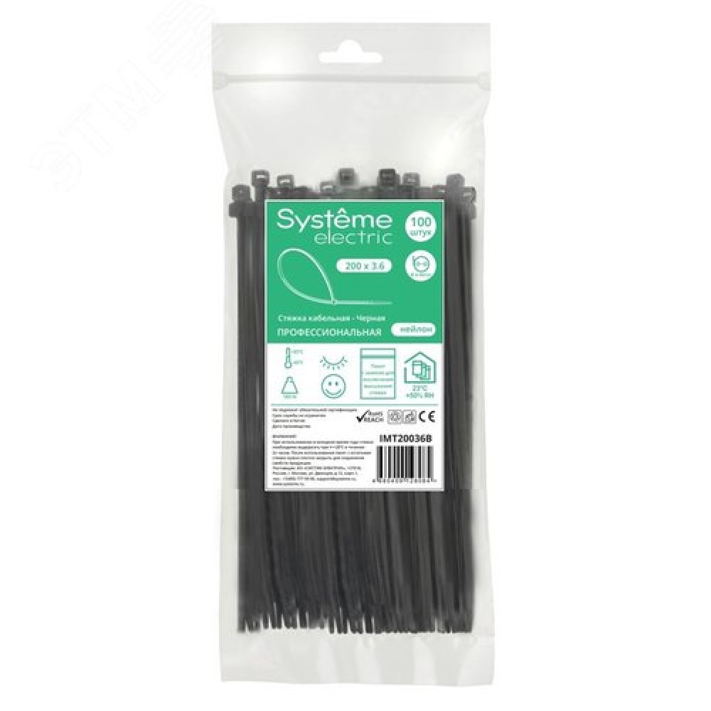 Технические характеристики Стяжка кабельная MultiSet 200х3.6 Чёрная (100шт)
