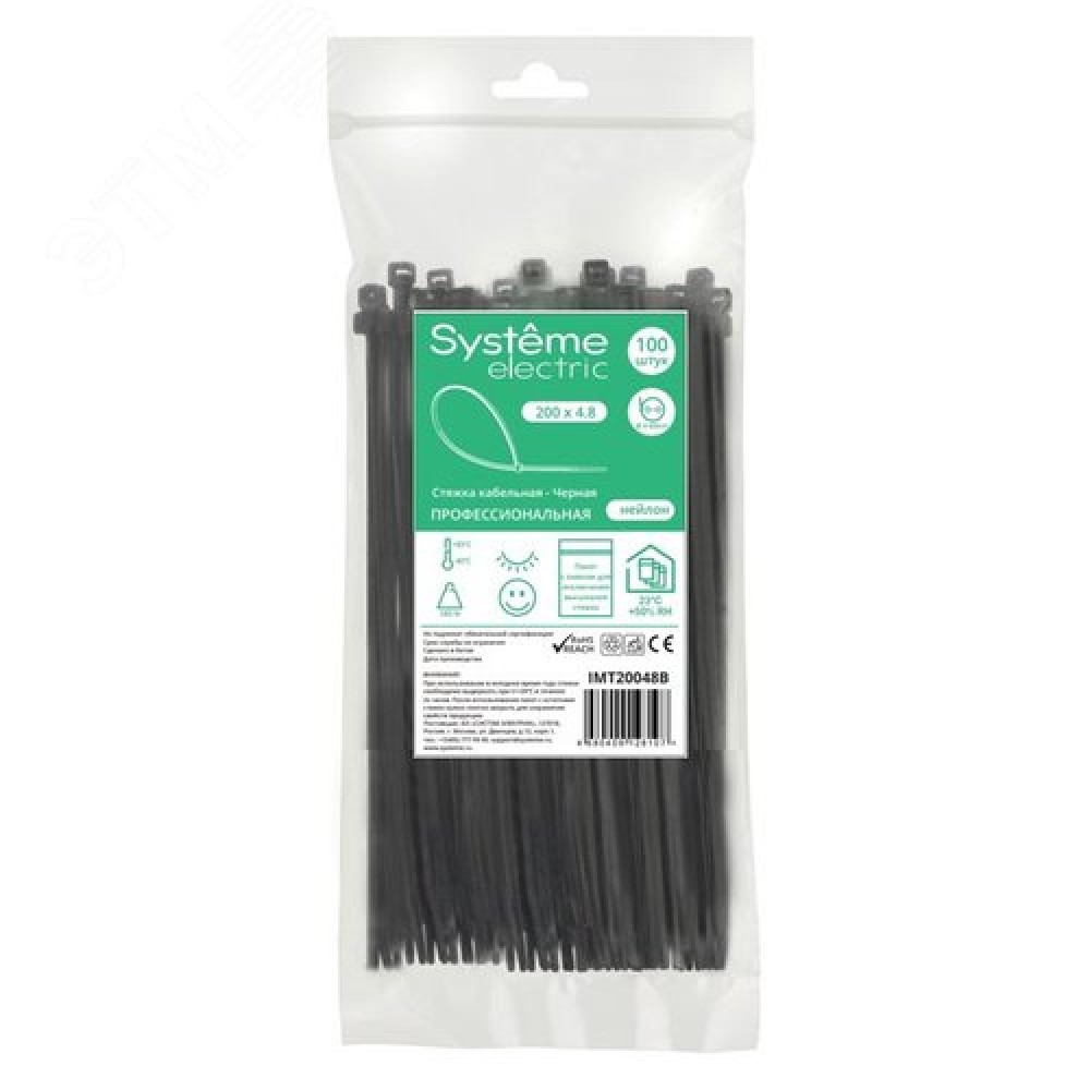 Технические характеристики Стяжка кабельная MultiSet 200х4.8 Чёрная (100шт)