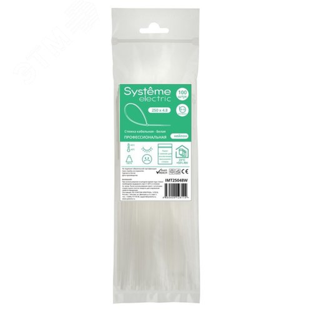 Технические характеристики Стяжка кабельная MultiSet 250х4.8 Белая (100шт)