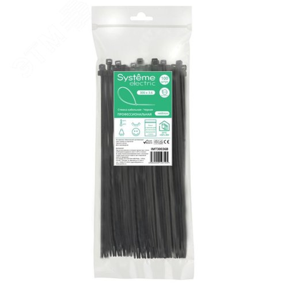 Стяжка кабельная MultiSet 300х3.6 Чёрная (100шт)