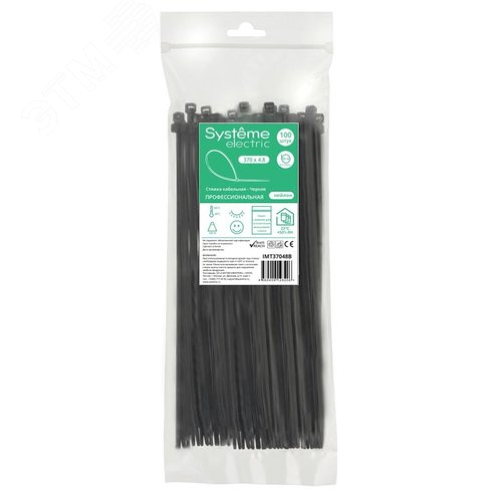 Технические характеристики Стяжка кабельная MultiSet 370х4.8 Чёрная (100шт)