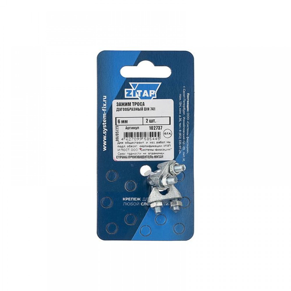Зажим троса дугообразный 6мм DIN 741 (уп.2шт) Zitar 102737 0 0 ₽