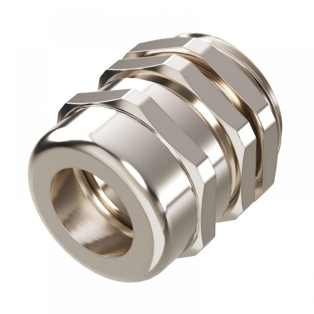 Кабельный ввод М20, изготавливается из никелированной латуни, снабжен контргайкой для фиксации, обеспечивает степень защиты IP65, для диаметра кабеля 8-12 мм.