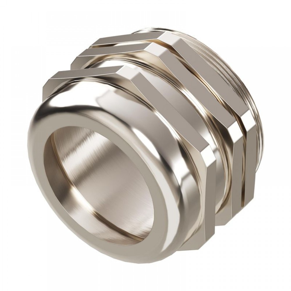 Кабельный ввод М54, изготавливается из никелированной латуни, снабжен контргайкой для фиксации, обеспечивает степень защиты IP65, для диаметра кабеля 32-38 мм.
