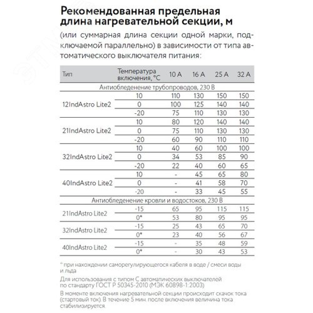 Технические характеристики Кабель нагревательный саморегулирующийся 32IndAstro Lite2, катушка 250 метров на отрез