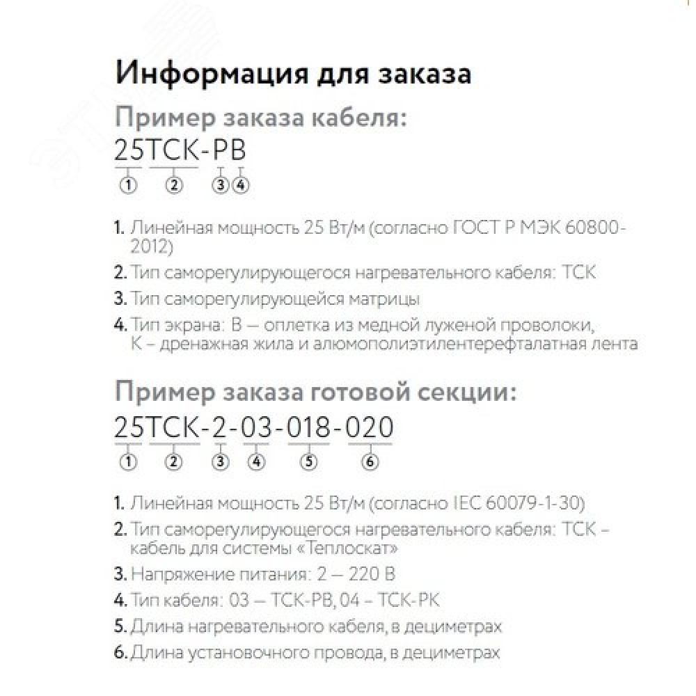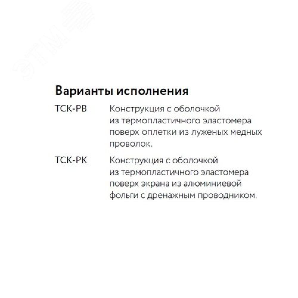 МаркаТСК Материал изоляцииПолиолефин Материал оболочкиПолиолефин