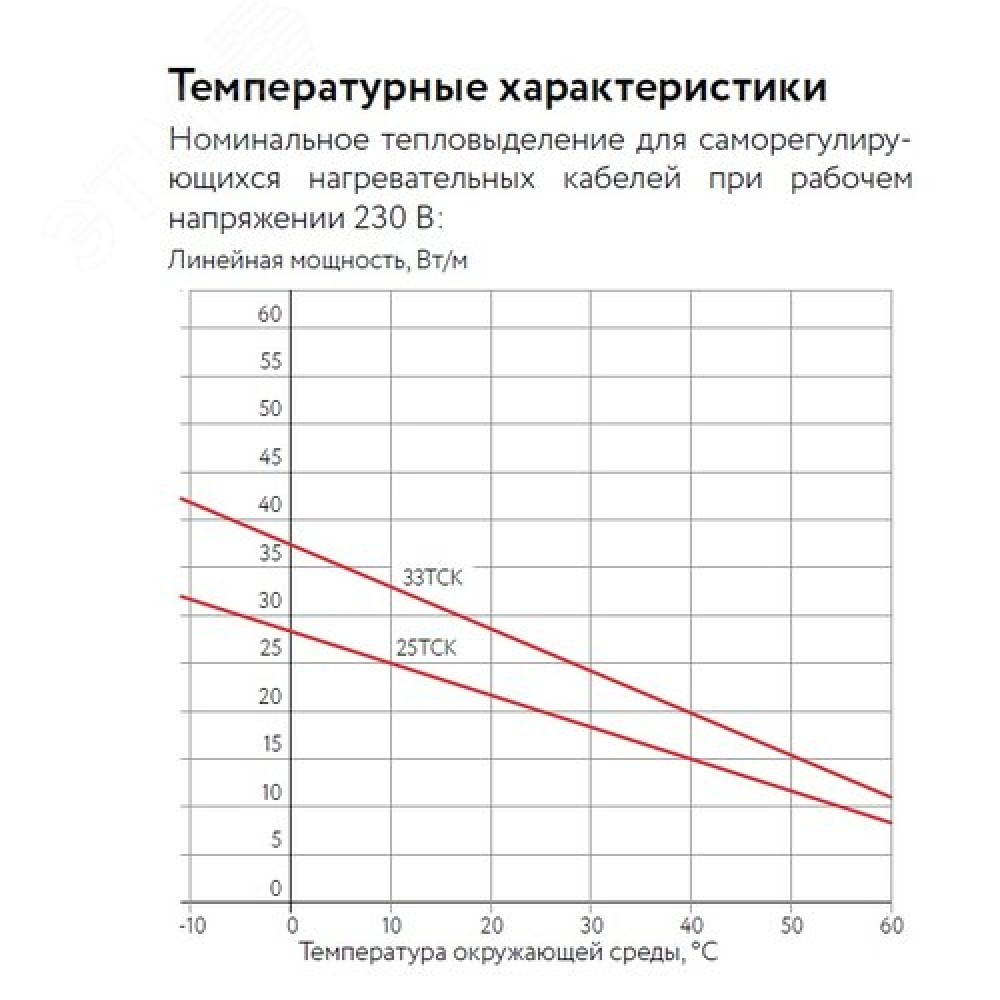 Линейная мощность нагревательного кабеля, Вт/м 33