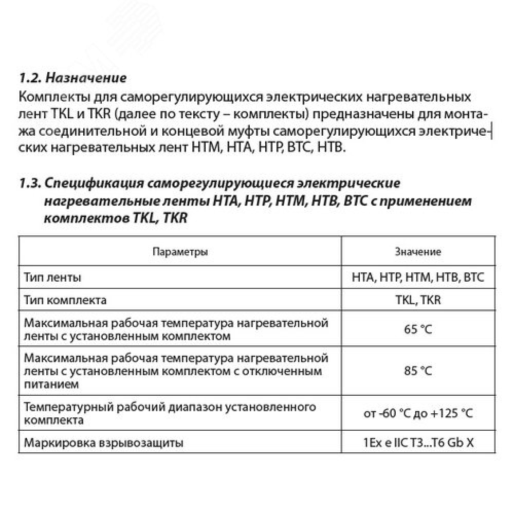 Технические характеристики Комплект для заделки TKL