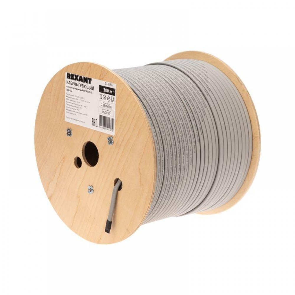 Технические характеристики Кабель греющий (нагрев.) саморег. SRL30-2 неэкранированный 30Вт/м 0.88кв.мм/55м 300м Rexant 51-0277