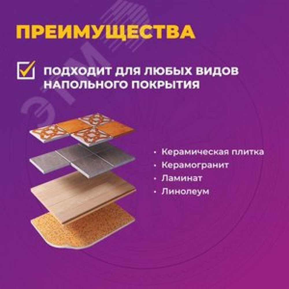 | Преимущества | Универсальность. Электрический теплый пол марки OneKeyElectro используется для помещений любой конфигурации и типа |