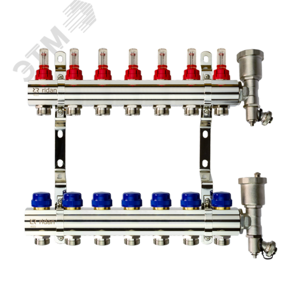 Коллекторная группа FHF-7RF set 7 контуров 1'x3/4' с расходомерами, воздухоотводчиками и кронштейнами