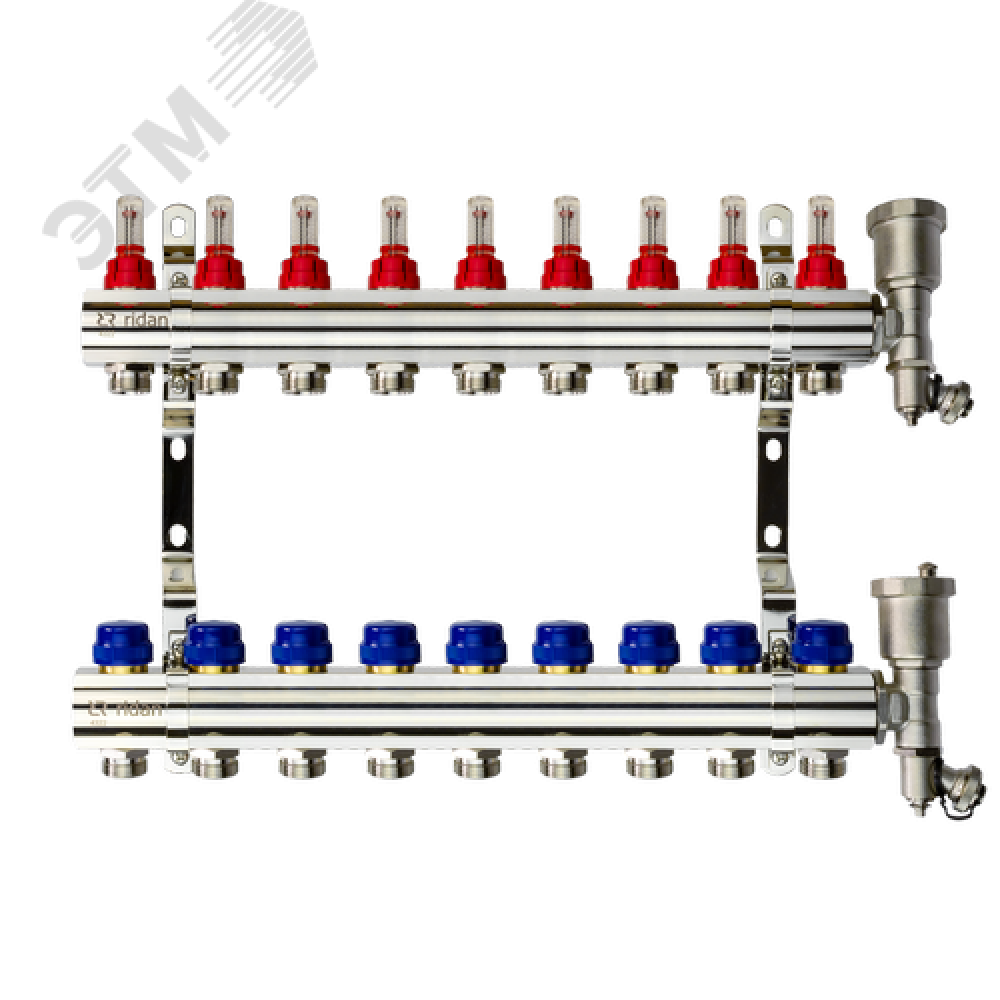 Коллекторная группа FHF-9RF set 9 контуров 1'x3/4' с расходомерами, воздухоотводчиками и кронштейнами