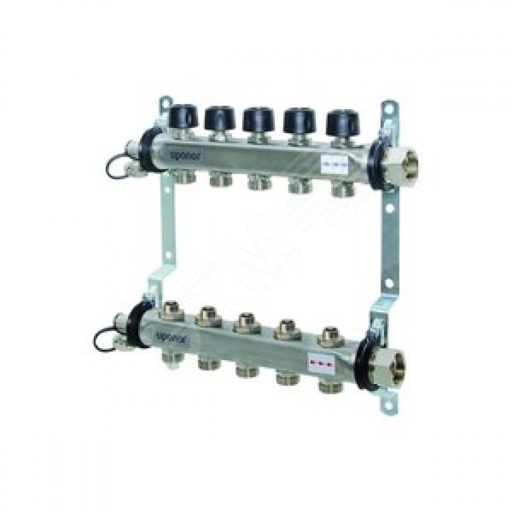 На складе Код товара: etm-1902828 Коллекторная группа SSM-5R set 5 контуров 1'X3/4' с термостатическими клапанами и кронштейнами