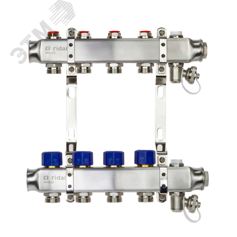 Технические характеристики Коллекторная группа SSM-4R set 4 контура 1'X3/4' с термостатическими клапанами и кронштейнами