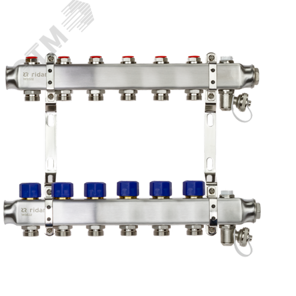 Коллекторная группа SSM-6R set 6 контуров 1'X3/4' с термостатическими клапанами и кронштейнами
