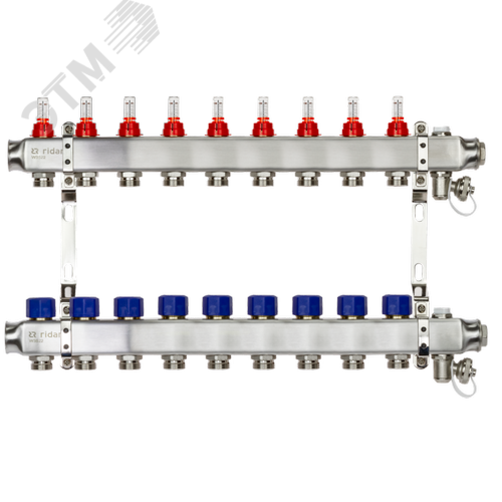 Коллекторная группа SSM-9RF set 9 контуров 1'X3/4' с расходомерами и кронштейнами