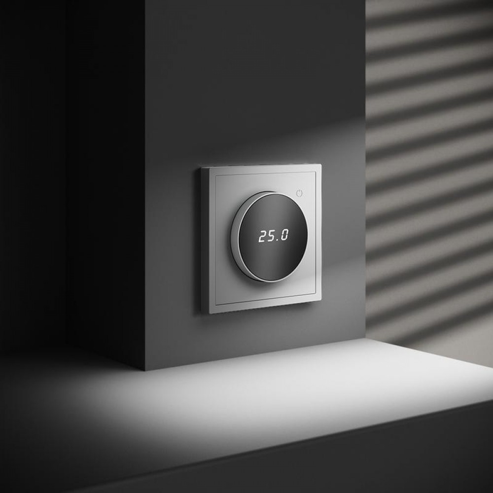 Место установки. Терморегуляторы Voltum предназначены для регулирования температуры теплого пола. Актуальны как в городских квартирах, так и в загородных дачных домах без центрального отопления. Корпус. Дизайн терморегуляторов Voltum сочетается со стилем остальных электрических устройств компании. Они совместимы со всеми рамками. Материал внешних декоративных элементов — поликарбонат. Конструктивные особенности. Терморегуляторы работают с любыми типами теплых полов и рассчитаны на нагрузку до 3500 Вт. Устройства оснащены светодиодной индикацией режима и дисплеем, на котором отображается температура поверхности пола. Красный индикатор — «подача питания на нагревательный кабель (идет процесс нагрева)», отсутствие индикации — «заданная температура достигнута». В течение 15 минут после нагрева терморегулятор переходит в интеллектуальный «спящий режим», уменьшая яркость подсветки цифр и сокращая энергопотребление. Регулировка осуществляется вращением панели управления. Терморегулятор поставляется в комплекте с механизмом из пластиковой накладки и датчиком температуры.