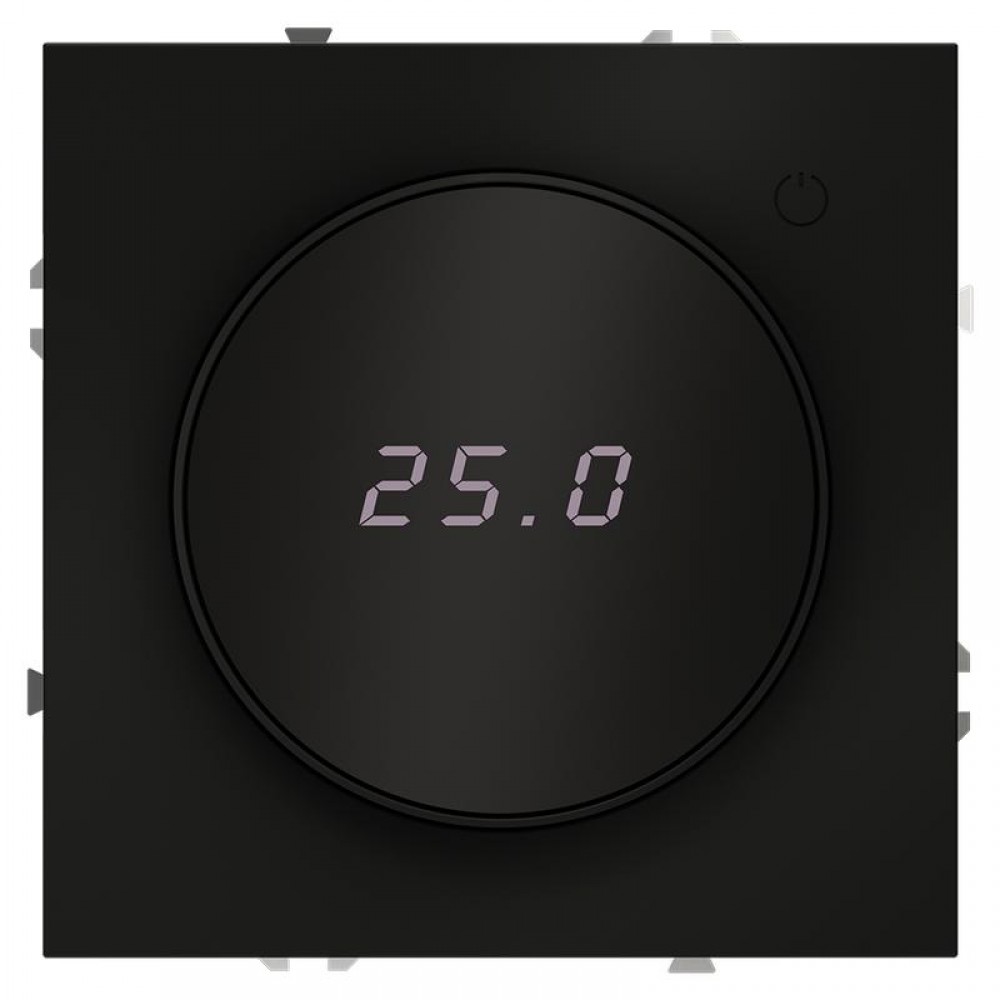 • Терморегулятор электронный S70 с индикацией и датчиком для теплого пола механизм черн. матов. Voltum VLS070108