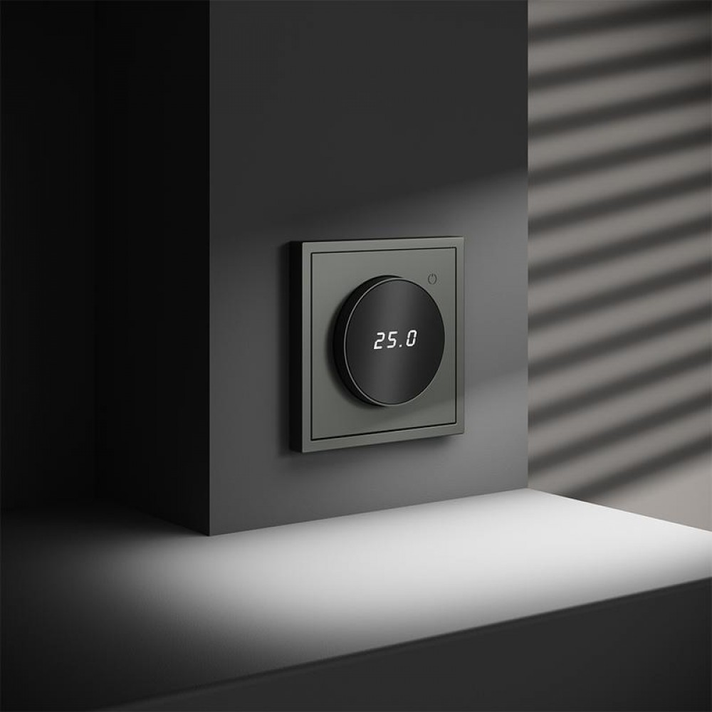Место установки. Терморегуляторы Voltum предназначены для регулирования температуры теплого пола. Актуальны как в городских квартирах, так и в загородных дачных домах без центрального отопления. Корпус. Дизайн терморегуляторов Voltum сочетается со стилем остальных электрических устройств компании. Они совместимы со всеми рамками. Материал внешних декоративных элементов — поликарбонат. Конструктивные особенности. Терморегуляторы работают с любыми типами теплых полов и рассчитаны на нагрузку до 3500 Вт. Устройства оснащены светодиодной индикацией режима и дисплеем, на котором отображается температура поверхности пола. Красный индикатор — «подача питания на нагревательный кабель (идет процесс нагрева)», отсутствие индикации — «заданная температура достигнута». В течение 15 минут после нагрева терморегулятор переходит в интеллектуальный «спящий режим», уменьшая яркость подсветки цифр и сокращая энергопотребление. Регулировка осуществляется вращением панели управления. Терморегулятор поставляется в комплекте с механизмом из пластиковой накладки и датчиком температуры.