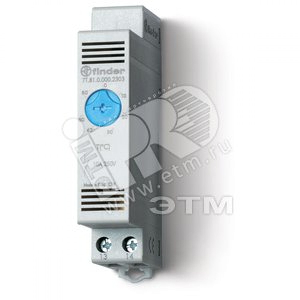 Термостат щитовой для включения охлаждения, диапазон температур 0…+60°C, 1NO 10A, модульный, ширина 17.5мм, степень защиты IP20 0 1461 ₽
