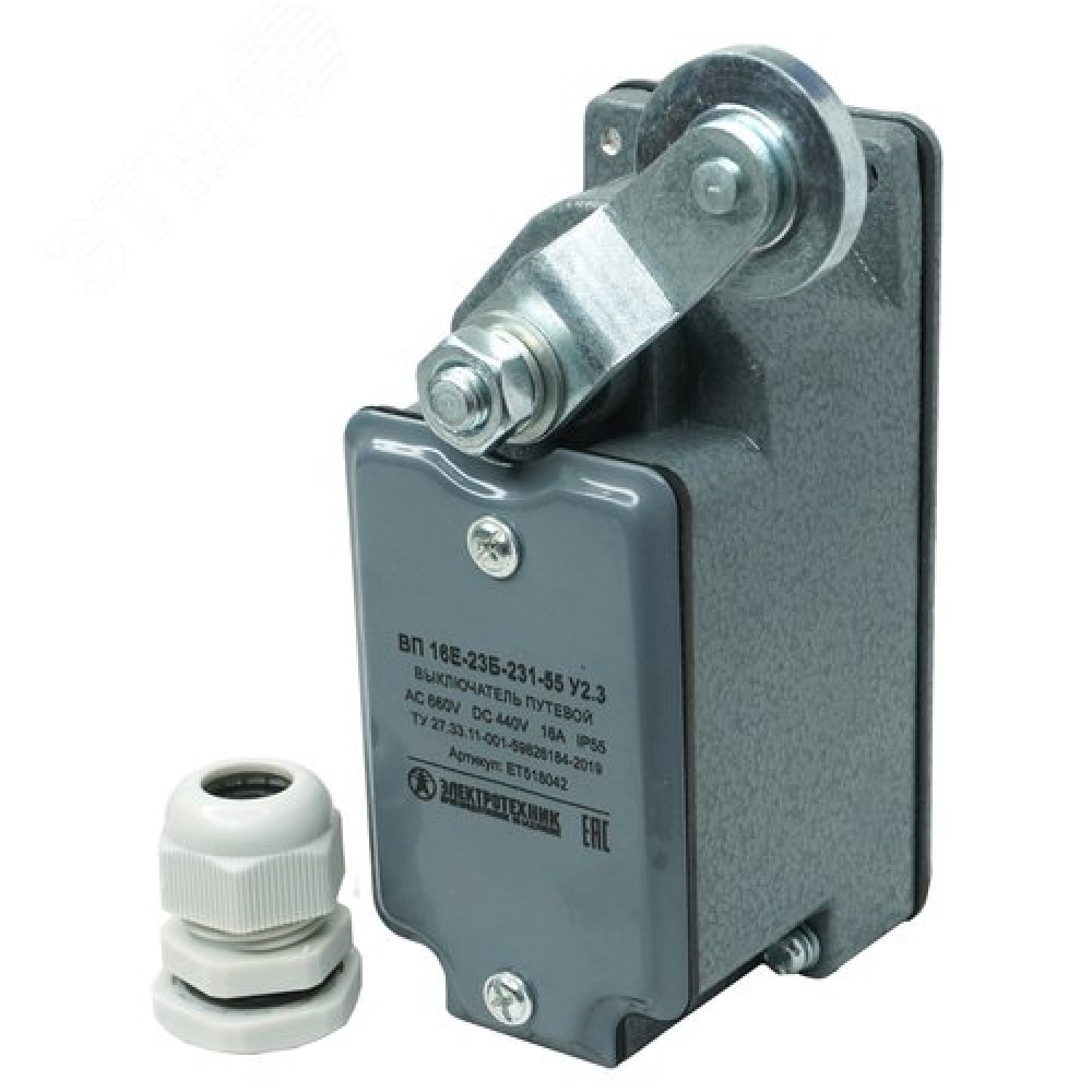 Выключатель путевой ВП16Е-23Б-231-55 У2.3 рычаг с роликом с сальником ход вправо самовозврат