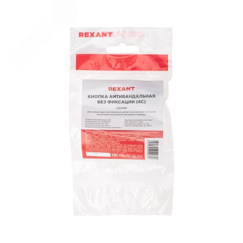 Кнопка антивандальная 12 12В Б/Фикс (4c) OFF-(ON) синяя 0 273 ₽