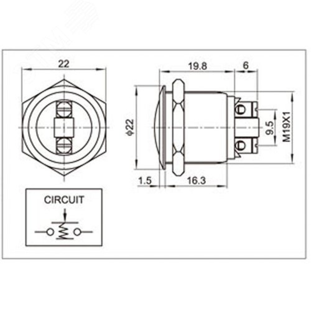 Технические характеристики Кнопка антивандальная 19 Б/Фикс (2с винт) OFF-(ON)сфера