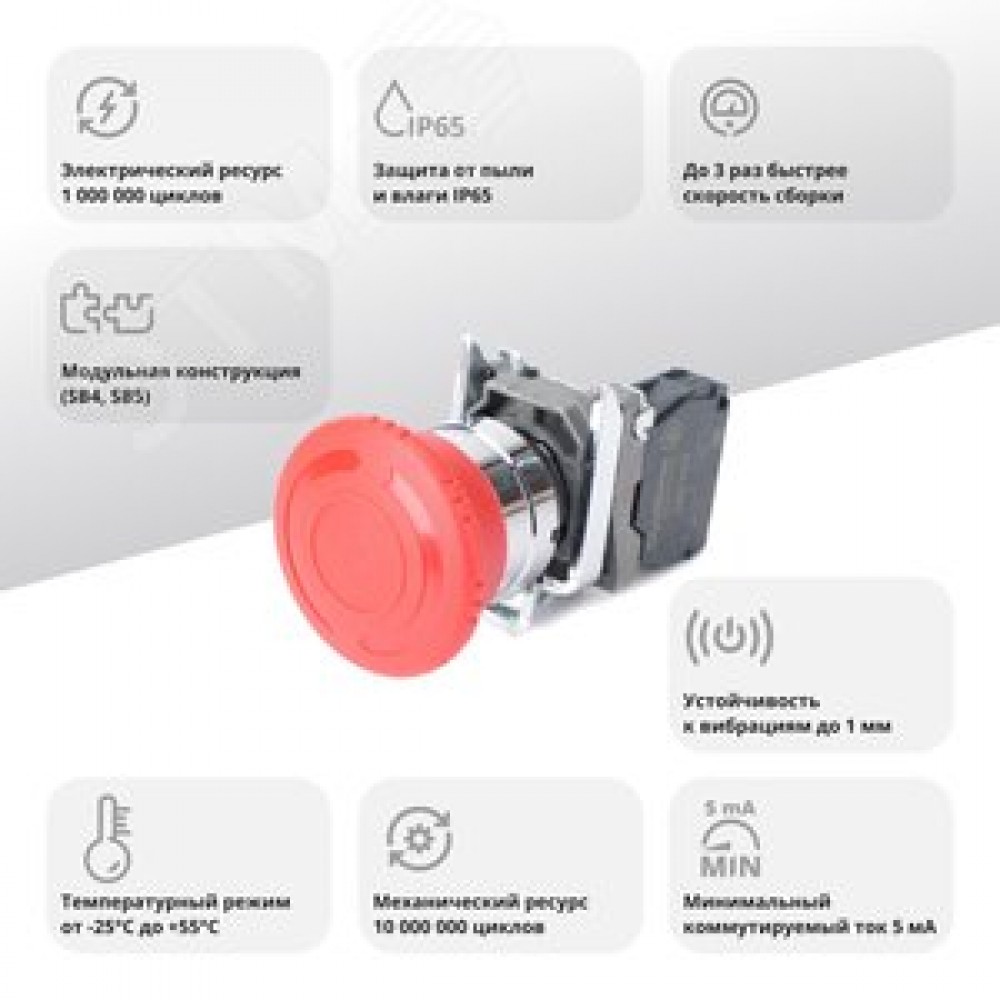 Технические характеристики Кнопка аварийн ост SB4 в сборе 22мм 40мм повернуть для возврат металл 1Н