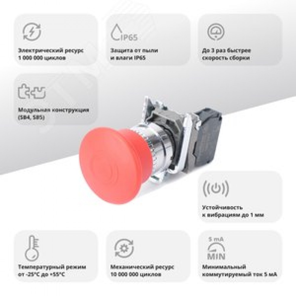 Технические характеристики Кнопка аварийного останова SB4 в сборе 22мм 40мм тяни-толкай металл 1НЗ