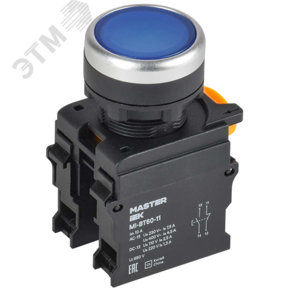 Технические характеристики Кнопка d=22мм 1NO+1NC синяя MASTER