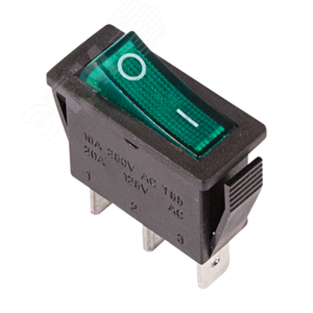 Технические характеристики Выключатель клавишный 250V 15А (3с) ON-OFF зеленый с подсветкой