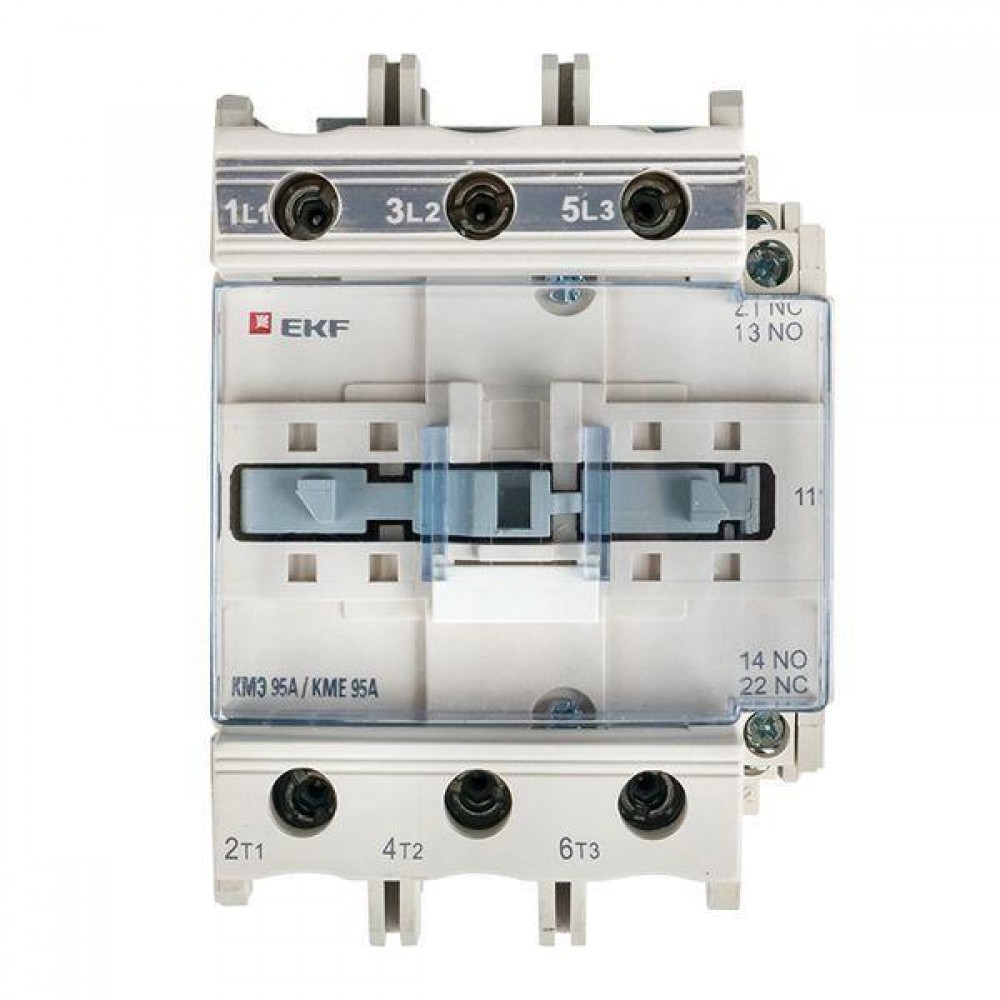 Контакторы КМЭ EKF PROxima состоят из корпуса, закрепленных в нем неподвижных контактов, подвижных контактов, которые закреплены в подвижной части магнитной системы. Неподвижная часть магнитной системы закреплена жестко в корпусе КМЭ. Пружина препятствует смыканию контактов. При подаче напряжения на катушку управления в магнитной системе контактора возникает магнитное поле, которое, преодолевая сопротивление пружины, смыкает магнитную систему и замыкает контакты. При отключении напряжения с катушки управления пружина размыкает контакты. Возможна коммутация алюминиевым и медным проводом.