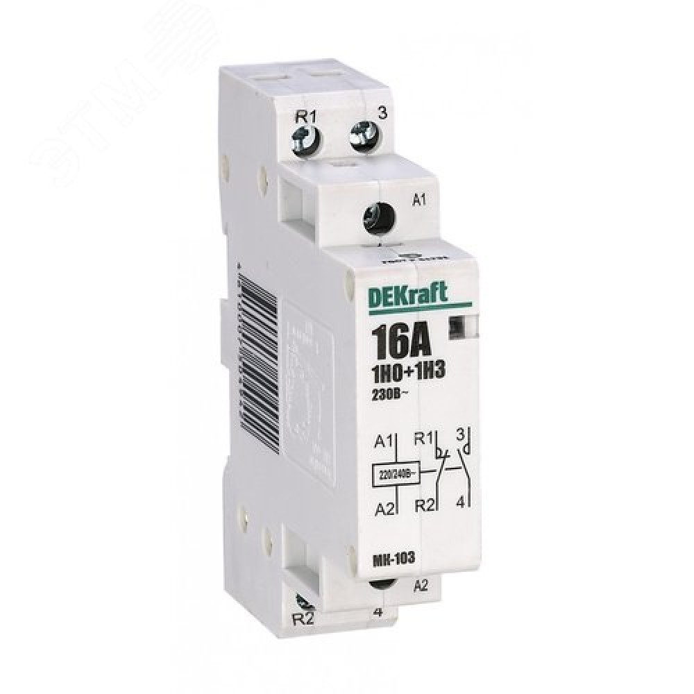 Технические характеристики Контактор модульный 1НО+1НЗ 16А 230В МК-103
