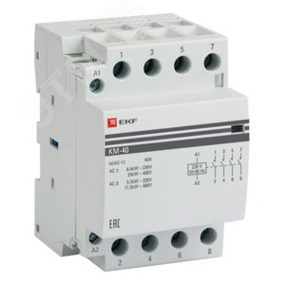 | Комплектация | контактор модульный КМ 40А 4NO 230В АС (3 мод.) PROXIMA EKF |