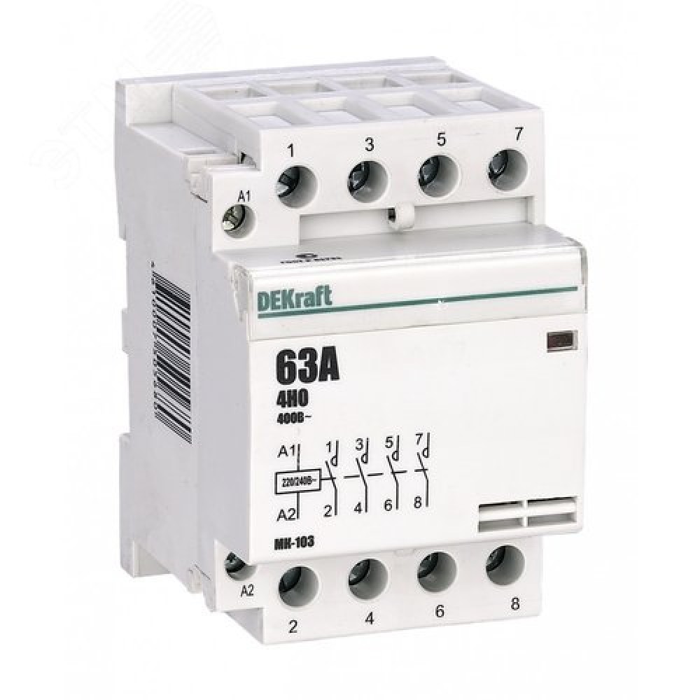Технические характеристики Контактор модульный 4НО 63А 230В МК-103