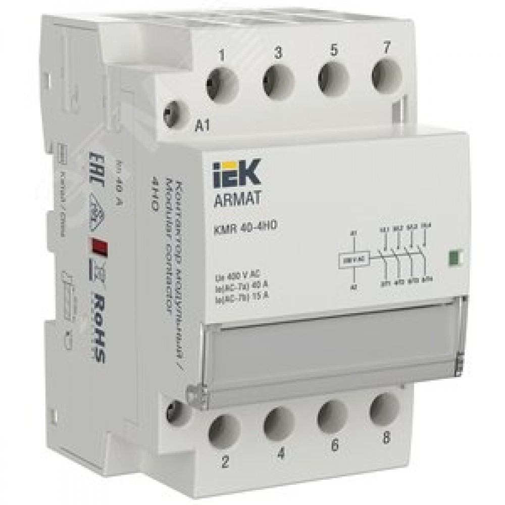 Технические характеристики Контактор модульный KMR 40А 230В AC 4НО