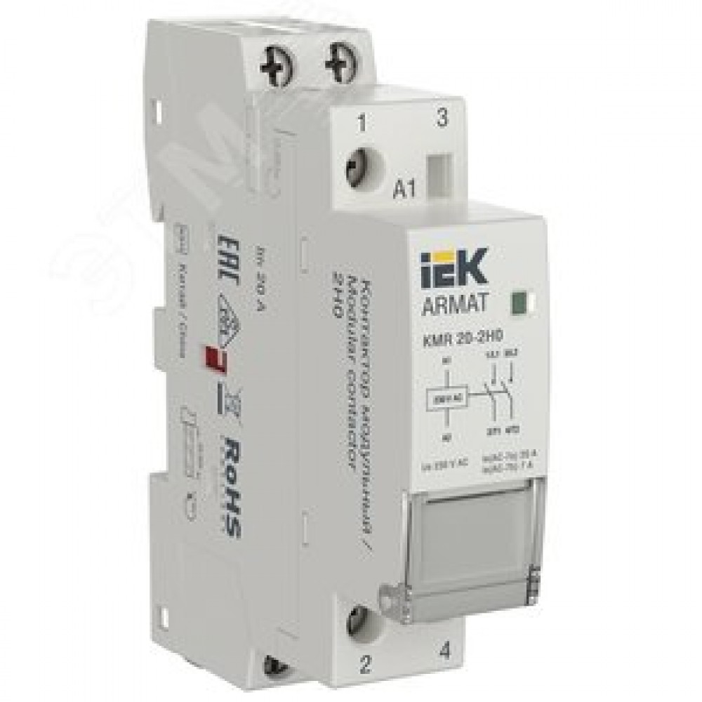 Технические характеристики Контактор модульный KMR 20А 230В AC 2НО