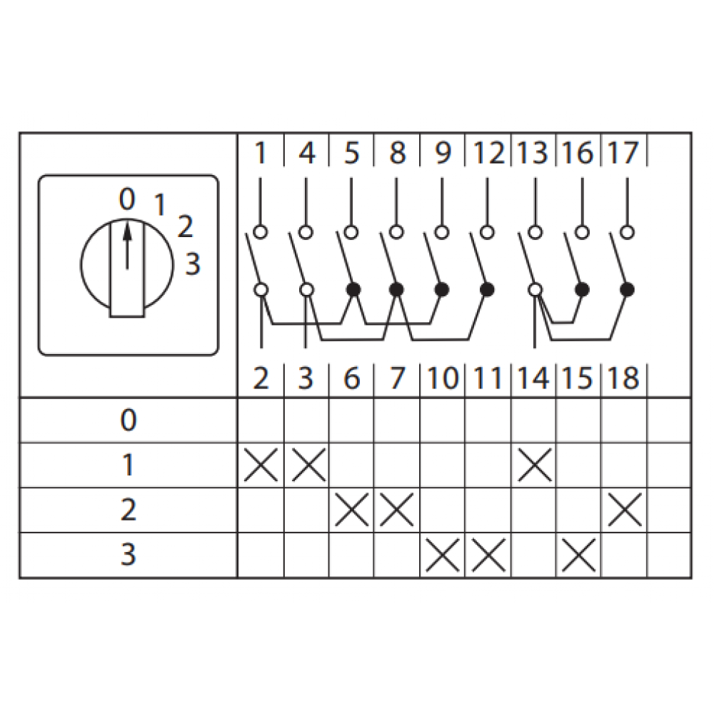 Технические характеристики Переключатель кулачковый ПК-1-103 3п 10А "0-1-2-3" EKF pk-1-103-10