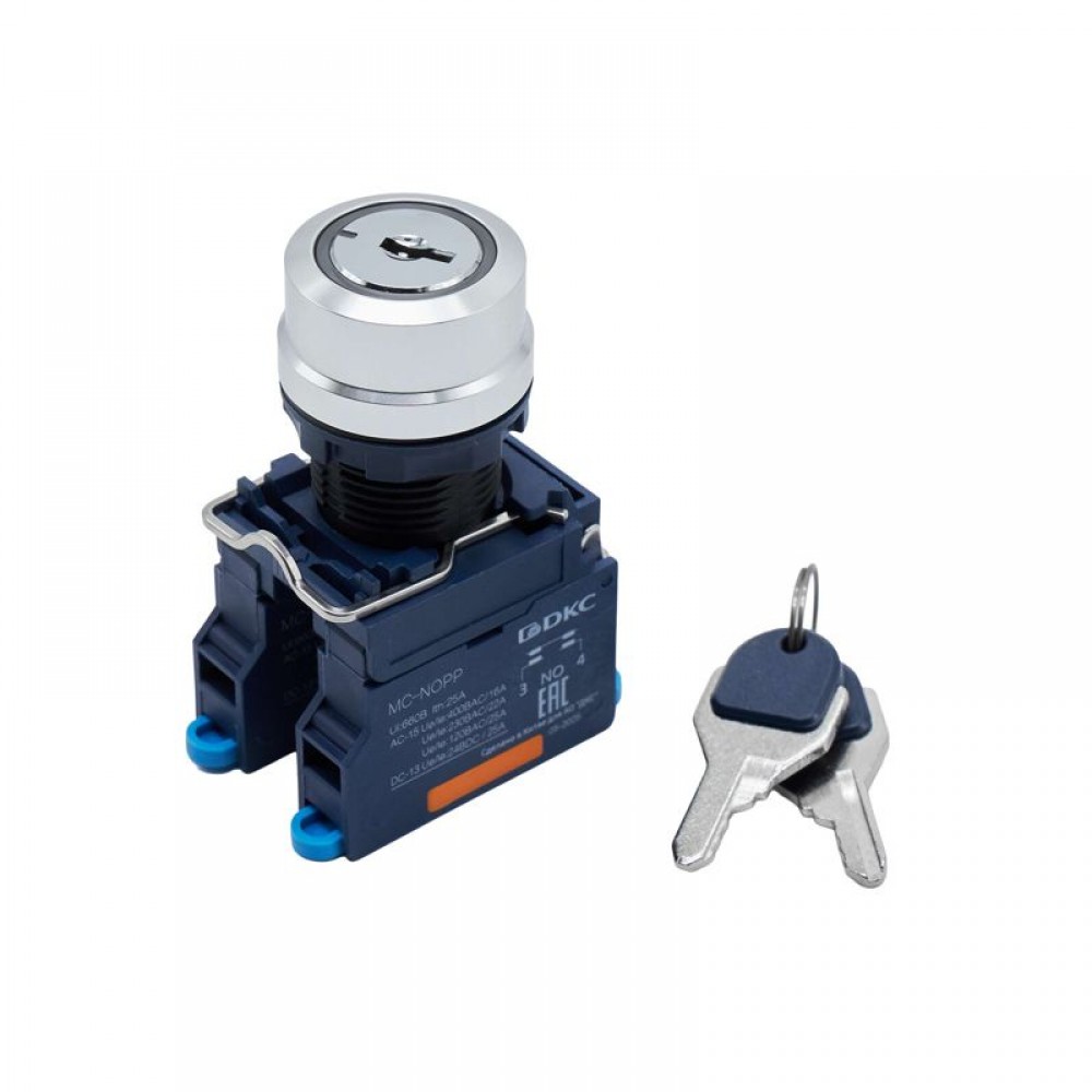 Технические характеристики Головка переключателя с ключом на 3 положения с возвратом стандартная ручка алюм. черн. DKC M22S-KM3A